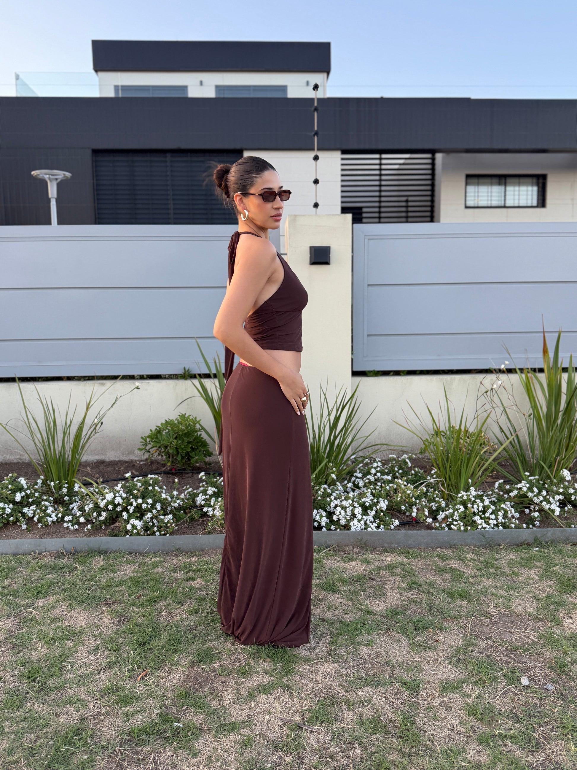 La modelo está utilizando un talle M